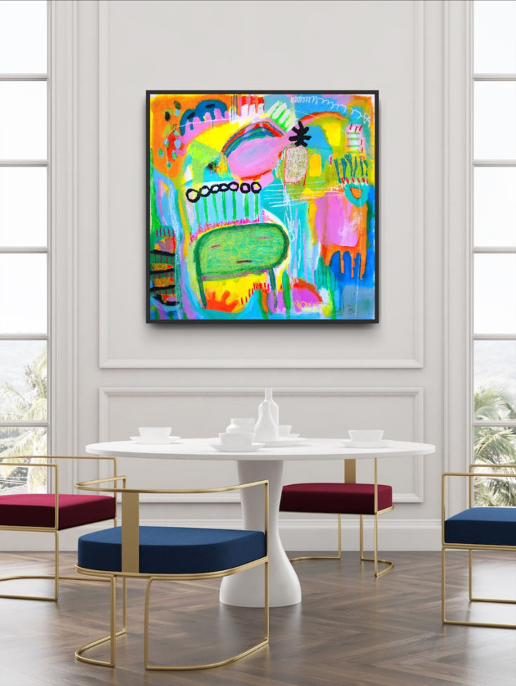 Ready-to-hang wooden framed print of my original abstract painting "Always Color Outside the Lines" a colorful contemporary abstract artwork featuring bold colors and shapes, on heavy-weight white matte paper that has a natural, smooth uncoated finish that feels luxurious to the touch. The perfect option to stand the test of time.