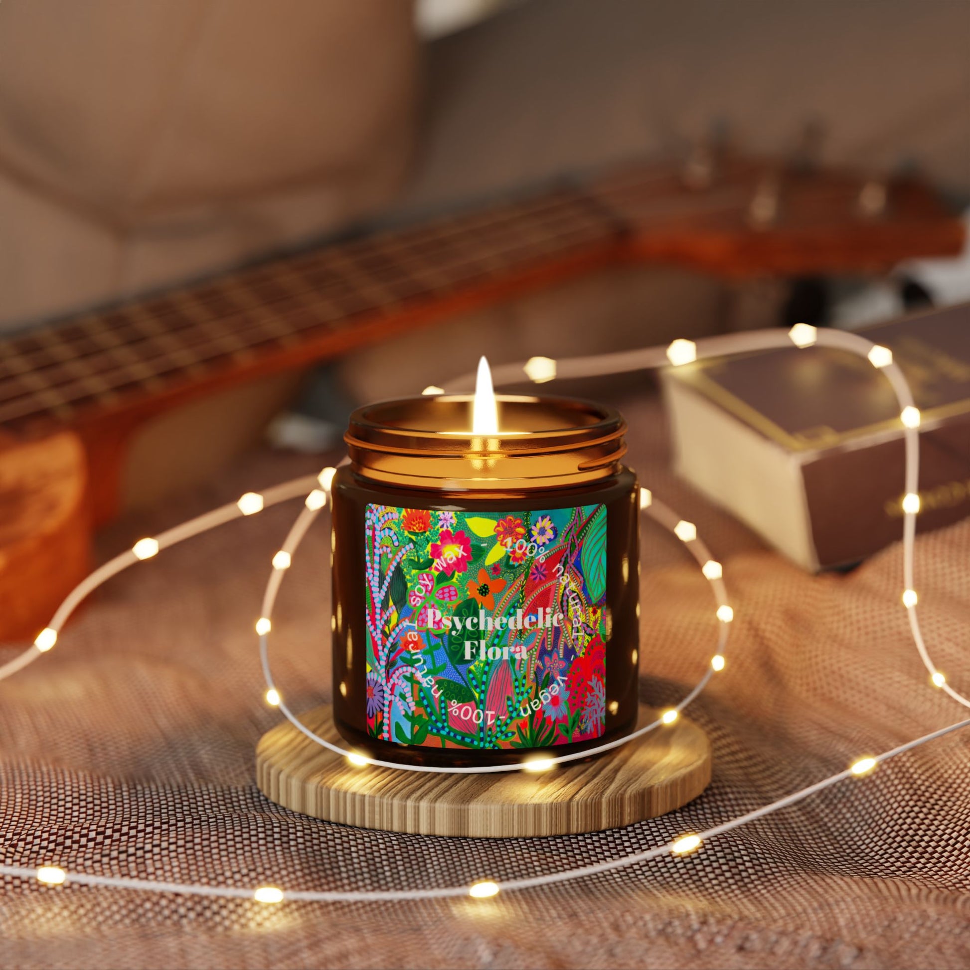 Experience the natural and vegan soy candle in an amber glass jar with a tropical scent. Perfect for creating a relaxing and inviting atmosphere in your home, this candle is ideal for those who appreciate eco-friendly products.